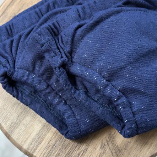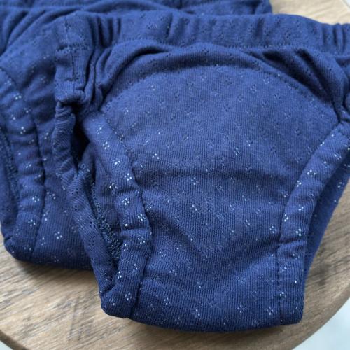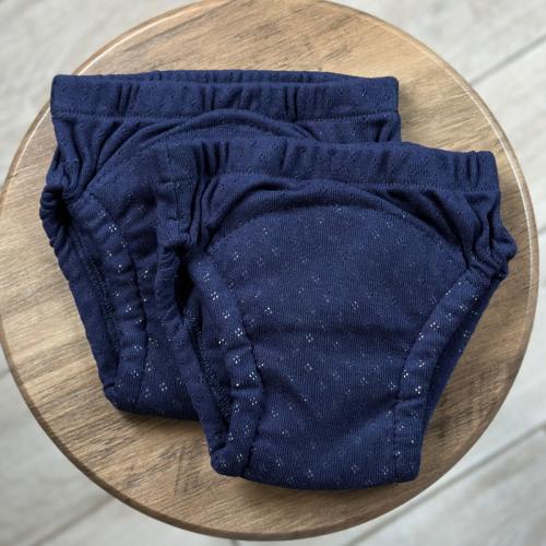 Тренувальні трусики із мусліновим вбираючим вологу шаром (6 шарів мусліну). Такі трусики мають м'які еластичні резиночки на ніжках, що попереджує протікання. Мають високу посадку для однакового комфорту хлопчиків і дівчаток. М'які та приємні на дотик, ідеально підійдуть для того, щоб інколи ніжна шкіра малюка відпочила від підгузника, а також незамінні в період привчання до горщика, для прогулянок в теплу пору року на вулиці. Всі тканини натуральні та гіпоалергенні.