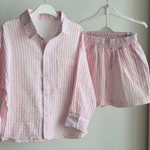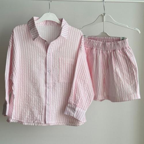 Набір сорочка та шорти мусліновий "Рожева смужка" Plamka (Poland) — ваш заказ