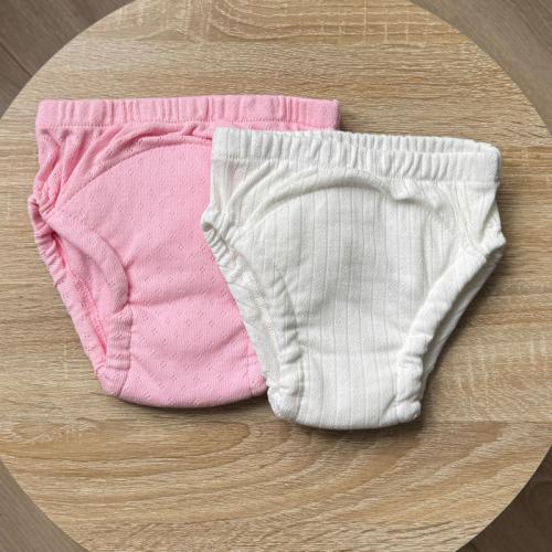 Тренувальні трусики із мусліновим вбираючим вологу шаром (6 шарів мусліну). Такі трусики мають м'які еластичні резиночки на ніжках, що попереджує протікання. Мають високу посадку для однакового комфорту хлопчиків і дівчаток. М'які та приємні на дотик, ідеально підійдуть для того, щоб інколи ніжна шкіра малюка відпочила від підгузника, а також незамінні в період привчання до горщика, для прогулянок в теплу пору року на вулиці. Всі тканини натуральні та гіпоалергенні.