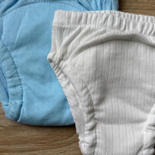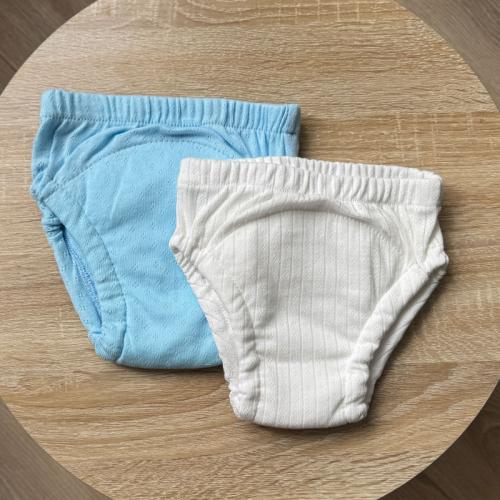 Тренувальні трусики із мусліновим вбираючим вологу шаром (6 шарів мусліну). Такі трусики мають м'які еластичні резиночки на ніжках, що попереджує протікання. Мають високу посадку для однакового комфорту хлопчиків і дівчаток. М'які та приємні на дотик, ідеально підійдуть для того, щоб інколи ніжна шкіра малюка відпочила від підгузника, а також незамінні в період привчання до горщика, для прогулянок в теплу пору року на вулиці. Всі тканини натуральні та гіпоалергенні.