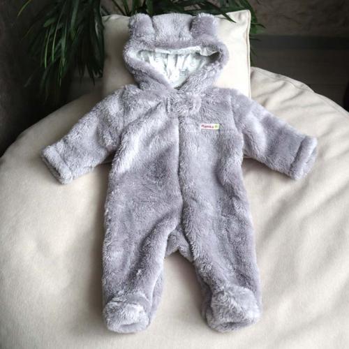Ніжний теплий комбінезон із приємного плюшу з капюшоном «Ведмедик» виконаний у світло-сірому кольорі. Такий плюшевий теплий чоловічок точно стане вашим бестселлером та найулюбленішою річчю для прогулянок восени і навесні. Цей комбінезон ідеально підійде малюкам, адже в ньому можна і активно проводити час , і відпочивати. Він чудово утримує тепло, тому вашій дитинці буде максимально комфортно. Для того, щоб крихітка не замерзла, комбінезон має рукавички на рукавах, які можна відгорнути за потреби, а для найлегшого перевдягання продумана застібка-блискавка.