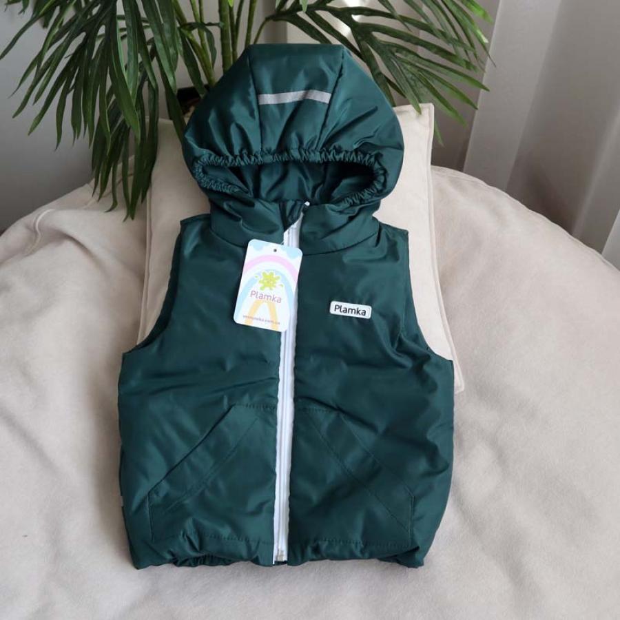 Демісезонний теплий дутий жилет для дитини - одна з найпотрібніших речей, особливо у весняно-осінній період. Зручно одягати як додатковий шар одягу на костюм, комбінезон чи легку вітровку для захисту від небажаних протягів чи сильного вітру. Жилет має зручний капюшон, кишені та світловідбиваючі елементи.