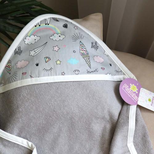 Великий, м'який і комфортний рушник з капюшоном після купання вашого малюка. Двостороння 100% бавовняна махра не дратує шкіру дитини, рушник добре вбирає вологу, не викликає алергічних реакцій. Усі тканини, які використовує виробник ''Plamka'', є безпечними для вашої дитини та відповідають стандартам Євросоюзу. Підходить дітям з народження до 2 років