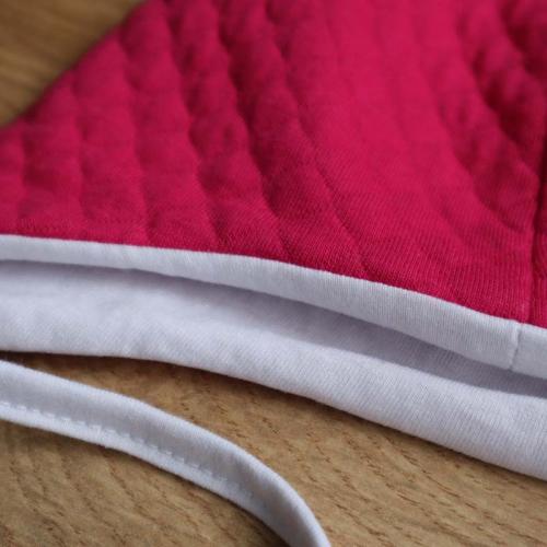 Така шапочка, виконана із м'якої тканини, стане незамінною в перші тижні життя малюка, особливо під час прогулянок на свіжому повітрі. Шапочку легко прати в пральній машинці, при цьому вона не втратить своєї форми. Прекрасно тримається на голівці дитинки завдяки зручним зав'язкам. Такий аксесуар стане як чудовим подарунком, так і незамінним предметом гардеробу вашої крихітки.